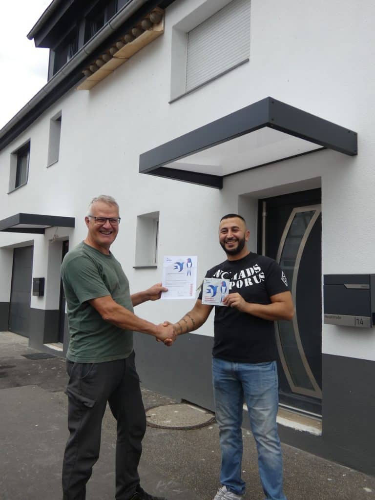 Letzte Woche nun überreichte unser Vorstand Oliver Maier in Zusammenarbeit mit dem NABU die Plakette und Urkunde „Schwalbenfreundliches Haus“ an die Familie Kamaci. Wir und die Schwalben freuen uns sehr über dieses vorbildliche Engagement und danken herzlich!